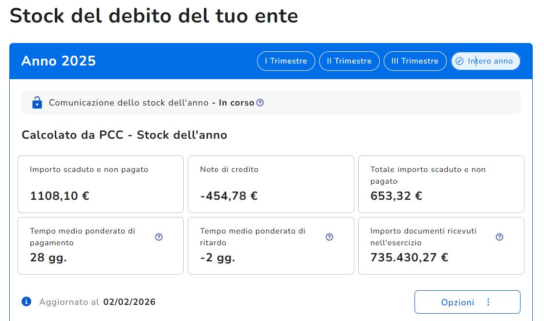 Certificazione debiti 2025 - STOCK DEBITO IV TRIMESTRE 2025