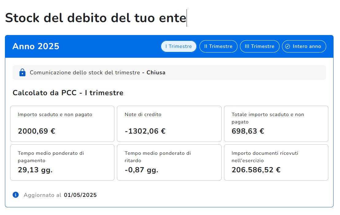 Certificazione debiti 2025 - STOCK DEBITO I TRIMESTRE 2025