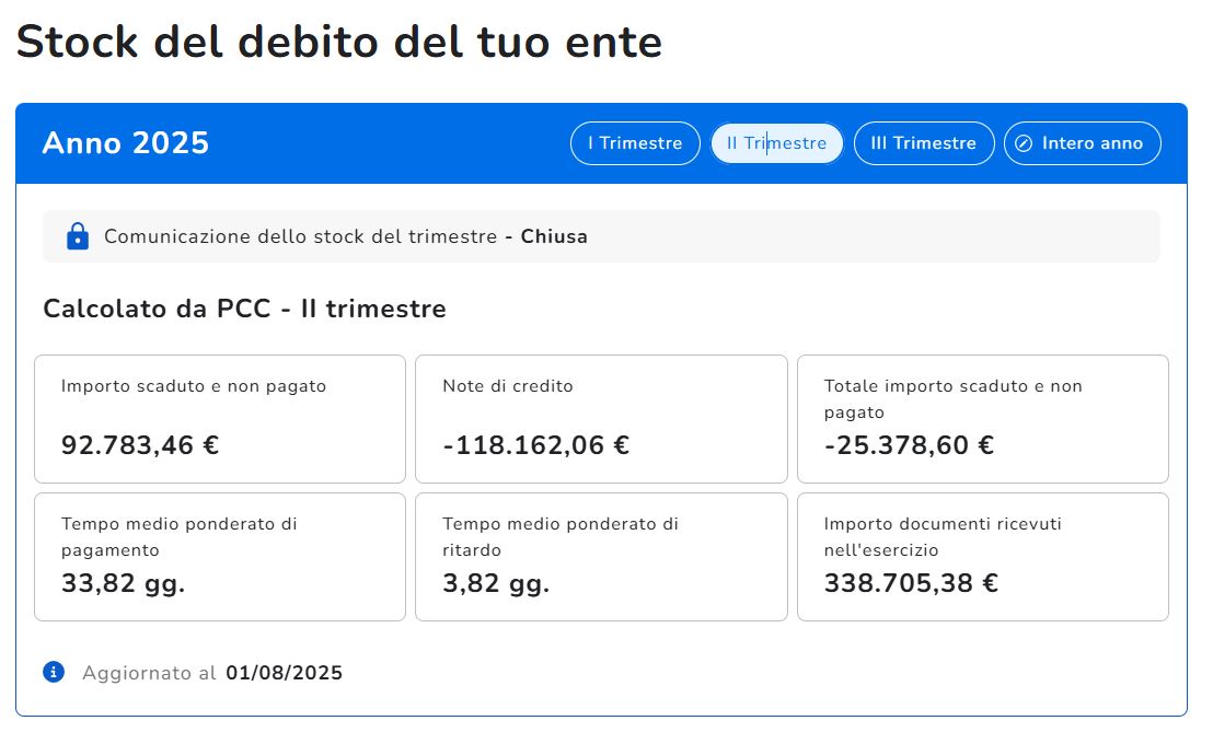 Certificazione debiti 2025 - STOCK DEBITO II TRIMESTRE 2025
